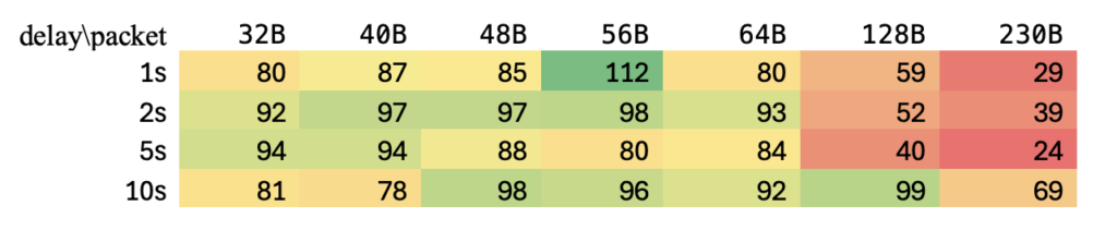 I started testing the system with transmitting varying packets sizes and delays between them.